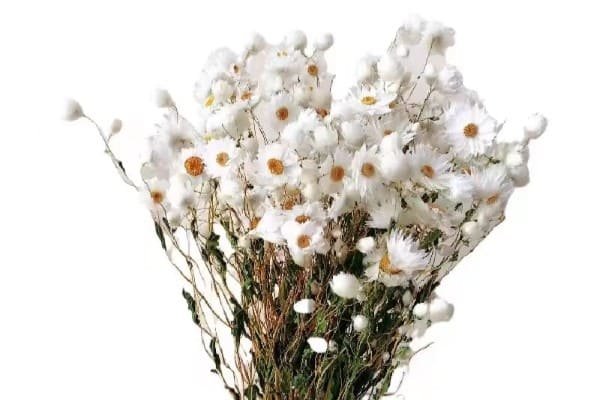 Our dried daisies feature bright, sunlit petals and a classic, enduring appeal. Each bloom is handled with care to ensure its joyful essence and pristine form are preserved, making them a versatile choice for enhancing any decor.
