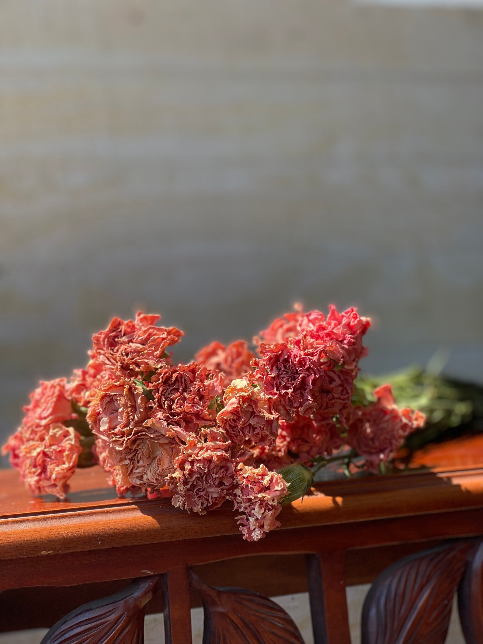 If you haven’t purchased pre-dried carnations, you’ll need to dry fresh ones. Here’s a simple method: