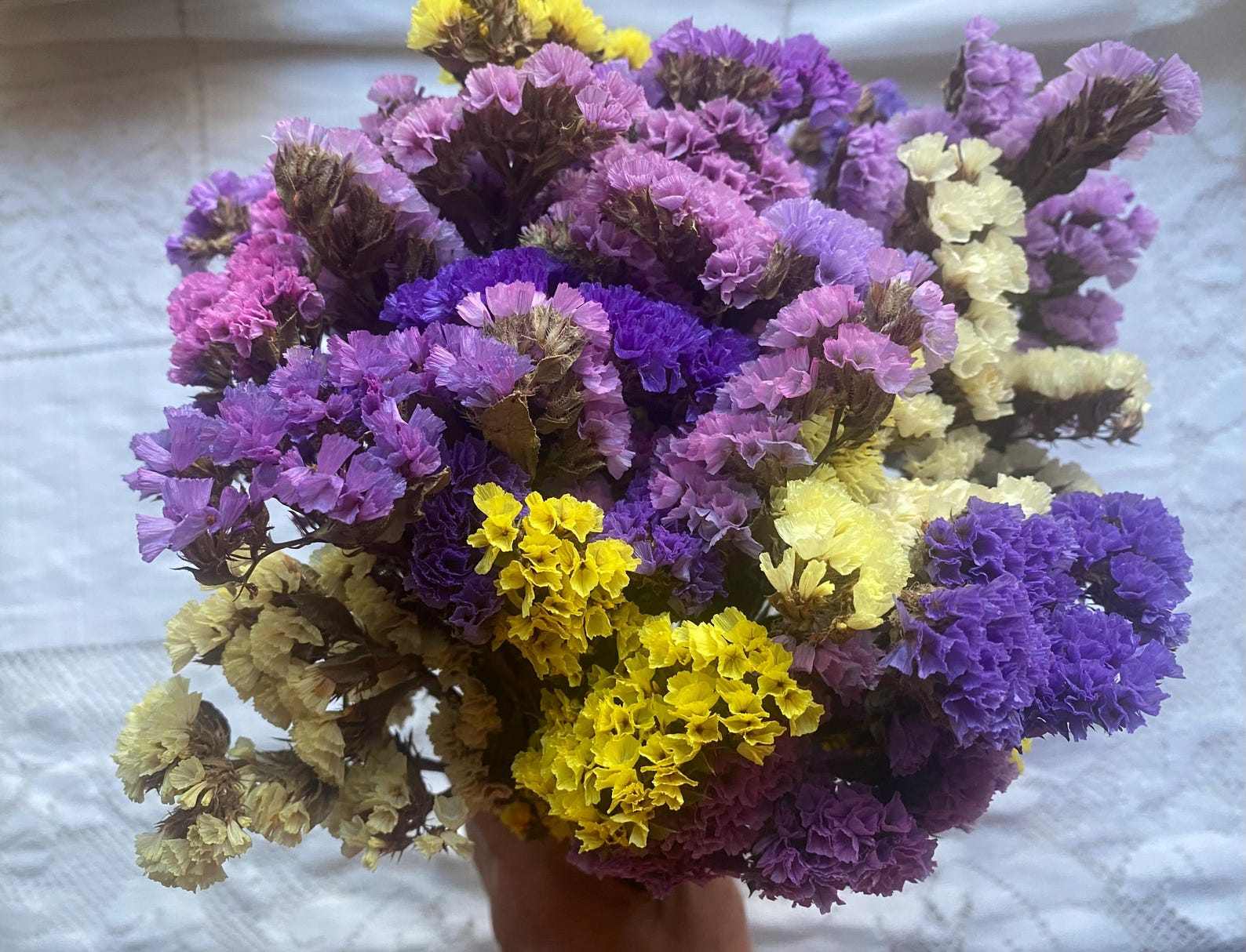 - Dried Statice Flowers: Choose colors that complement your decor. Statice is available in shades of purple, blue, pink, white, and yellow.