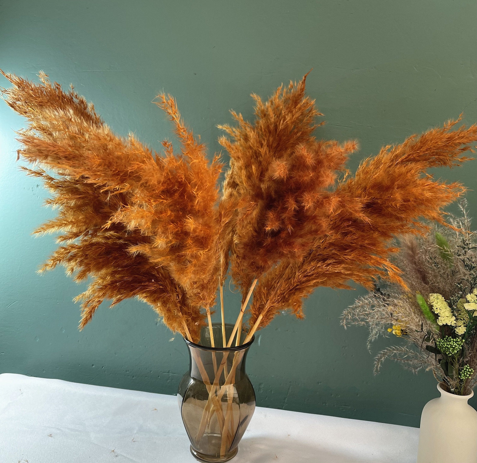 • Style Tip: For a balanced look, ensure the vase is wide enough to hold the volume of both the pampas grass and amaranth without them appearing overcrowded.