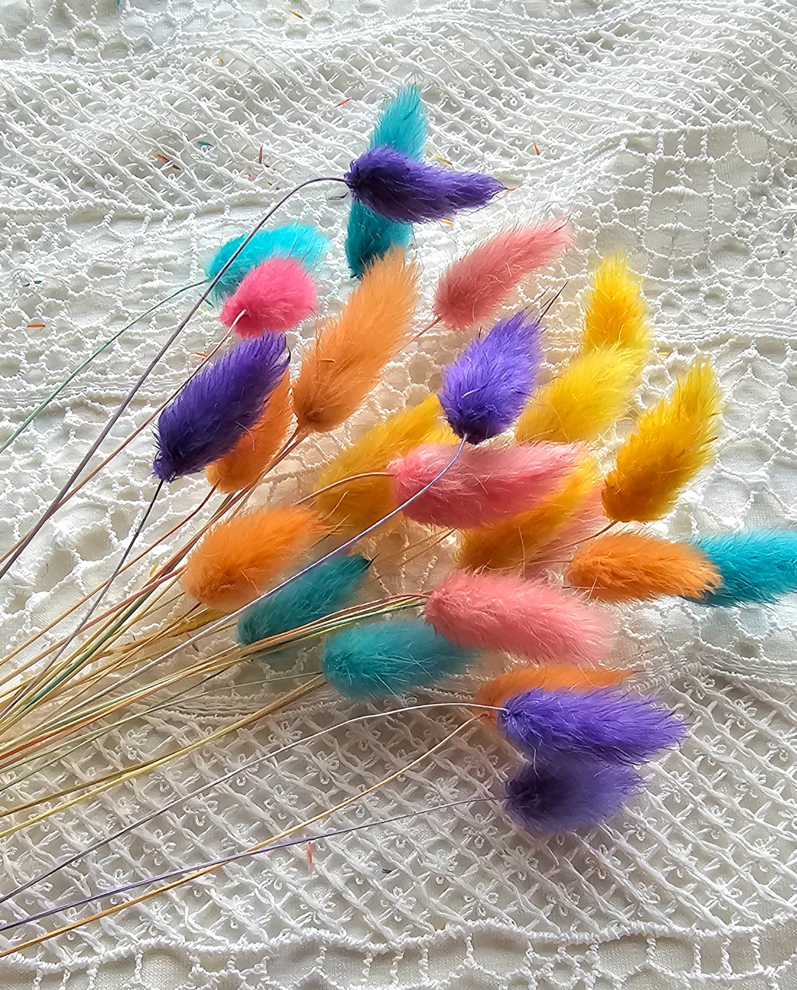 Home Decor: Incorporate Lagurus and dried grasses into your home decor by placing them in tall vases, creating arrangements for mantelpieces, or even filling shadow boxes with small bundles for a unique wall art display.