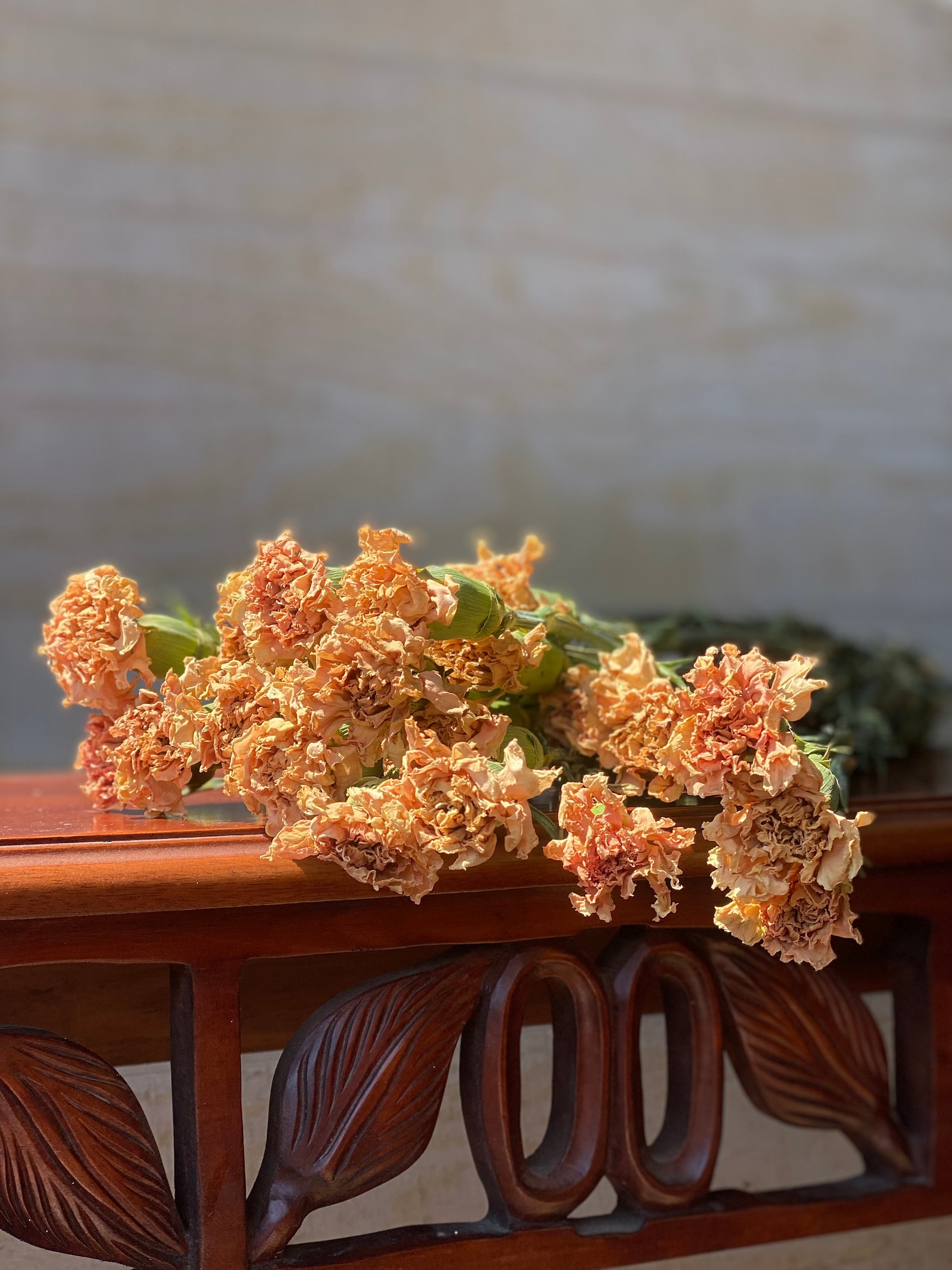 Dried carnations have a unique texture that adds a tactile dimension to your space. The crinkled, papery petals create an interesting contrast when paired with different types of textiles, offering opportunities for balance and harmony.